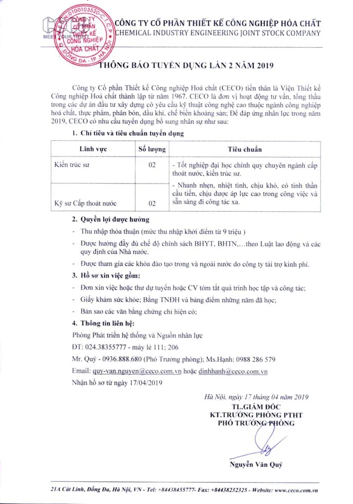 THÔNG BÁO TUYỂN DỤNG NĂM 2018