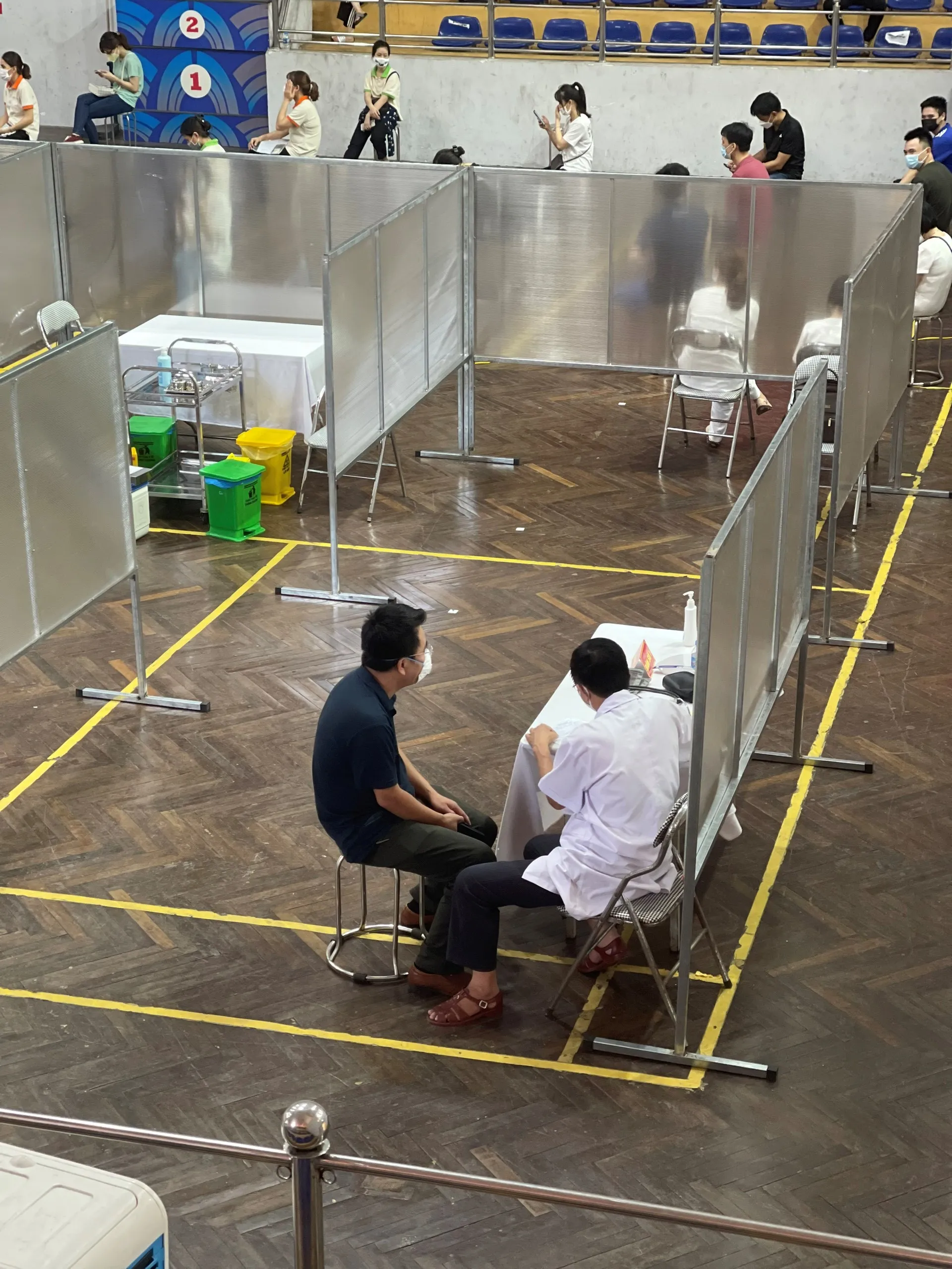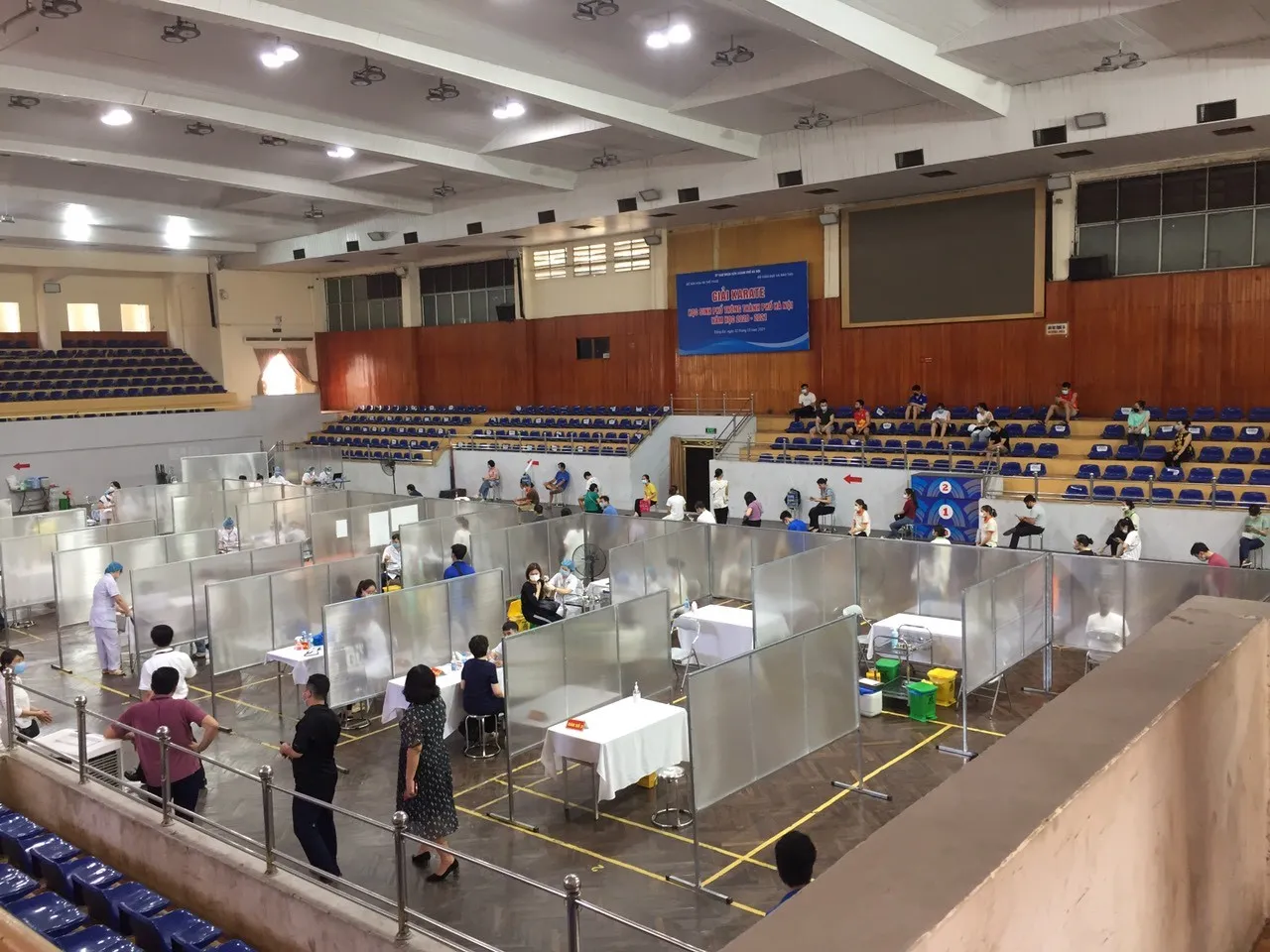 CBNV Công ty xếp hàng đợi tiêm vắc xin – Giãn cách theo quy định 5k